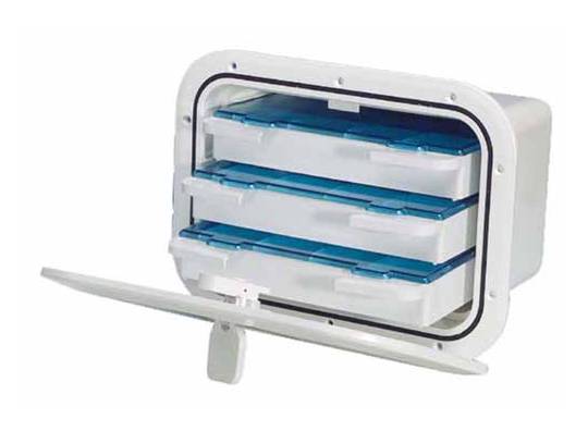 Cajón empotrable con compartimentos fabricado en ABS color blanco