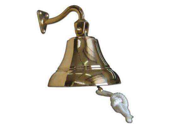 Campana fabricada en latón pulido. Con soporte de pared oscilante. Señalización de tipo manual.