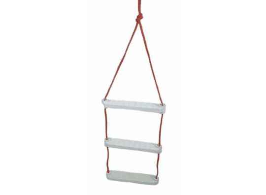 Escalera de Cuerda tipo “Gato”. Tiene 4 peldaños. Está fabricada con cabo de polipropileno para que sea resistente y peldaños antideslizantes de plástico blanco para facilitar el agarre al subir al barco.
