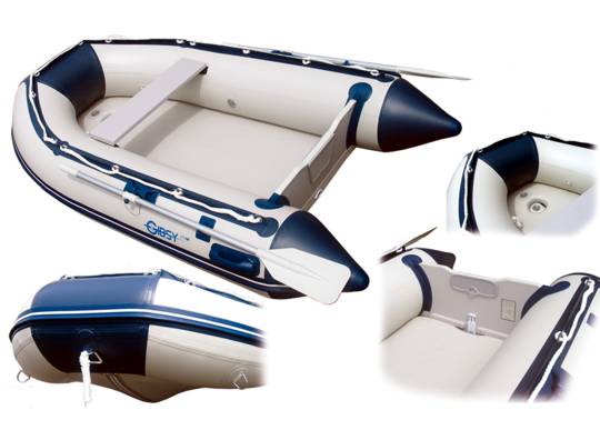 Gibsy M320. Esta embarcación neumática es ideal para poder ser transportada en el coche pues es muy ligera y fácil de montar. Este este modelo, el suelo está formado por un colchón de aire a alta presión extremadamente cómodo y ligero. Se monta con rapidez y se puede transportar a cualquier sitio gracias a su bolsa de transporte. El diseño de la serie M ofrece un gran confort y seguridad, haciéndola ideal para cualquier actividad: Buceo, pesca o viajes de paseo con los amigos, desembarcar como auxiliar de un barco mayor.