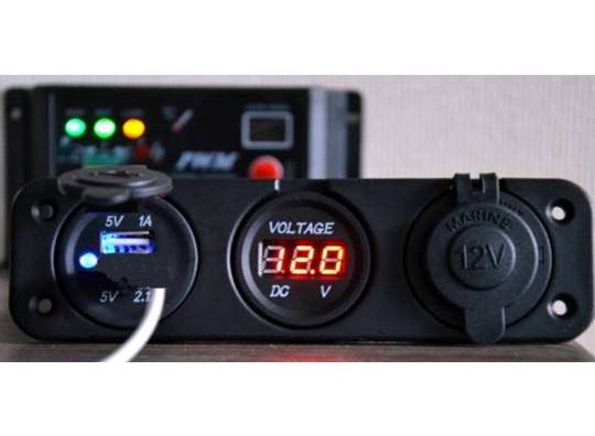 Nada más fácil y económico para controlar la carga de nuestro parque de baterías mientras recargamos el aparato que necesitemos. El producto que le ofrecemos es un Panel Cargado con tres elementos, un voltímetro y dos tomas de carga, una de mechero y otra un USB. Un producto muy útil para tener en tu barco.