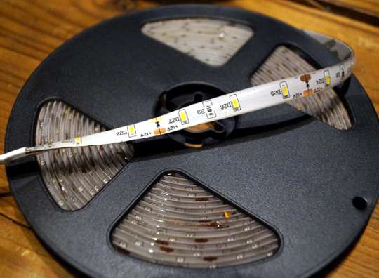 Características de la Tira Led Blanca: 30 vatios, 12 voltios. Forrada de silicona para soportar la humedad. Color ambiental: Blanco. Longitud: 5 m.